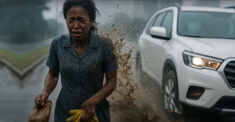 She was just a cleaner trying to get to work. One splash of mud changed her life! The rich woman behind the wheel had no idea – someone powerful was watching…