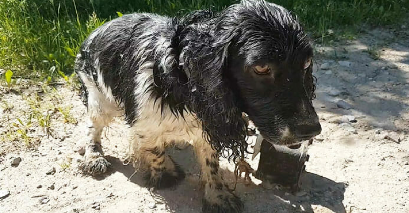 Woman finds shaking dog by the river, looks closer at its throat and realizes the horrific truth