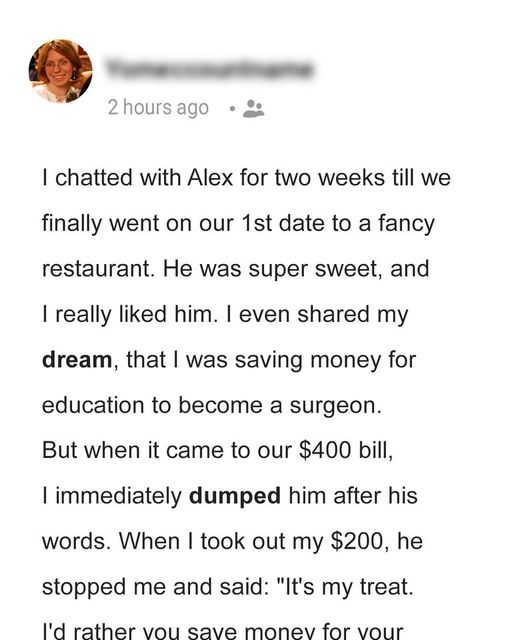 I Dumped the Man I Really Liked on Our First Date despite Him Offerring to Pay For Whole $400 Dinner