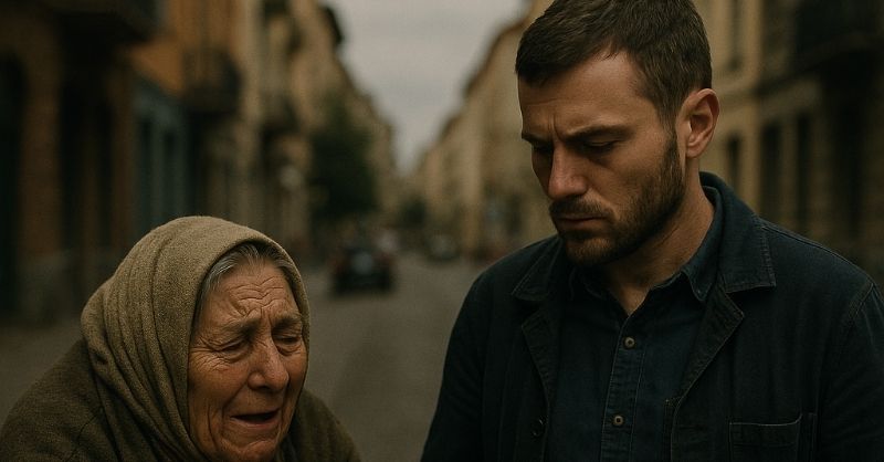 “Young man… at least a slice of bread, please… my grandson hasn’t eaten anything today.” The old woman’s voice trembled. But when the man saw what was shining...